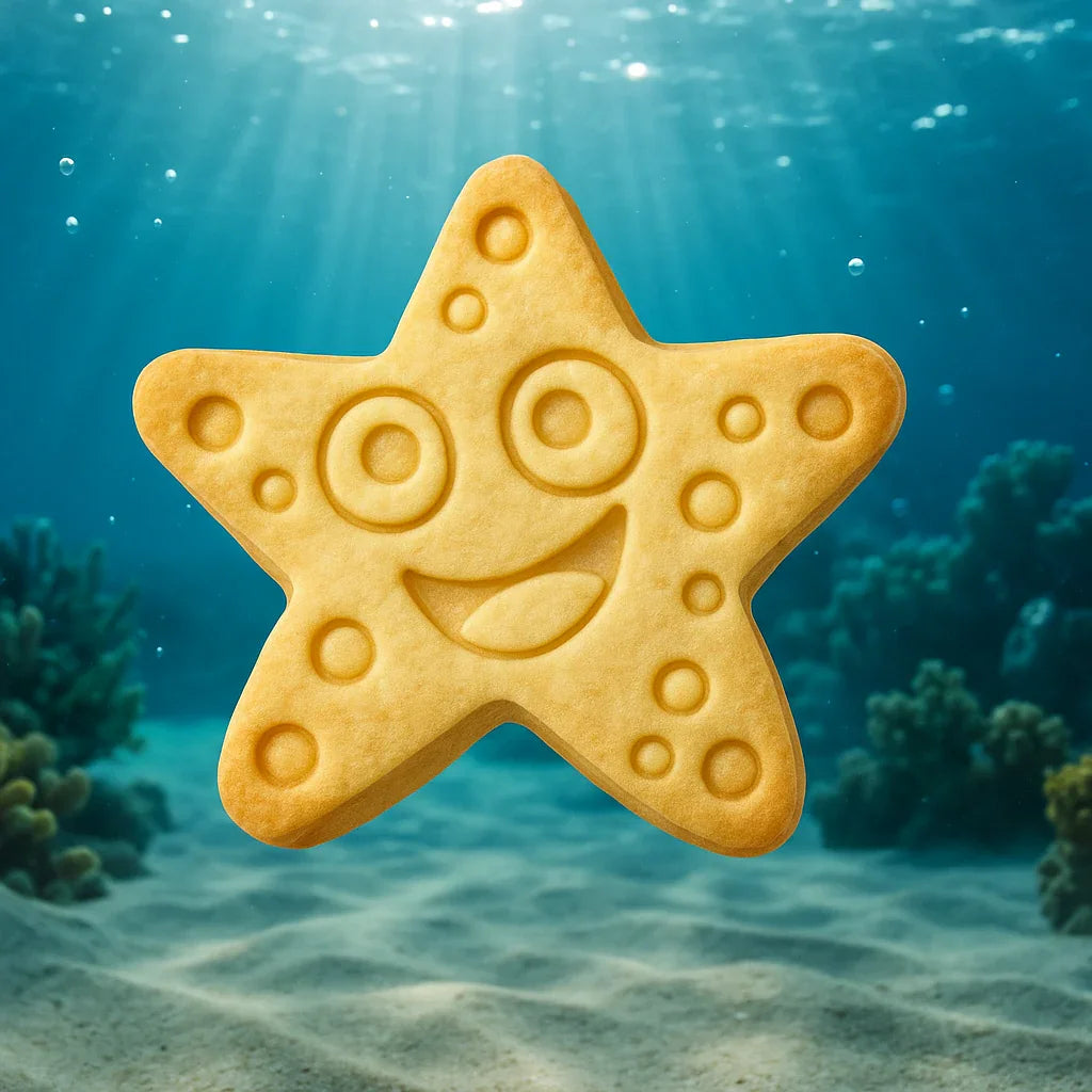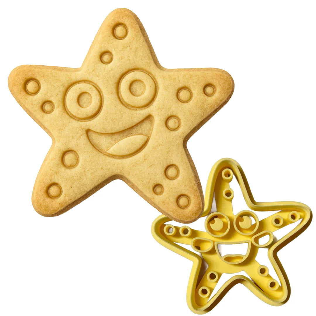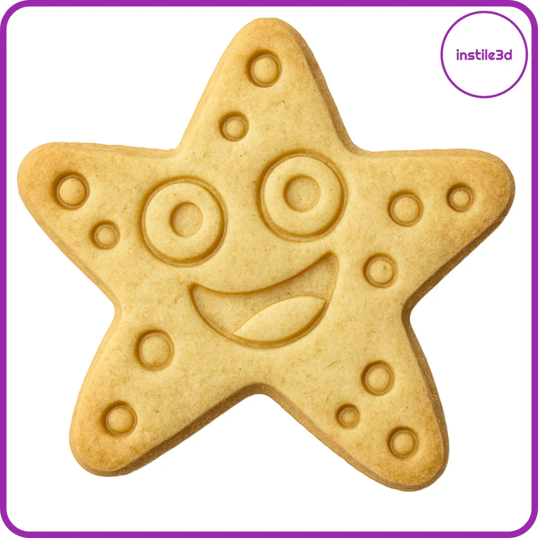 Tagliabiscotti Stella Marina realizzato in PLA con stampa 3D. Perfetto per portare il sorriso in cucina, questo tagliabiscotti a forma di simpatica stella marina con occhi grandi e dettagli decorativi è ideale per biscotti allegri e creativi.